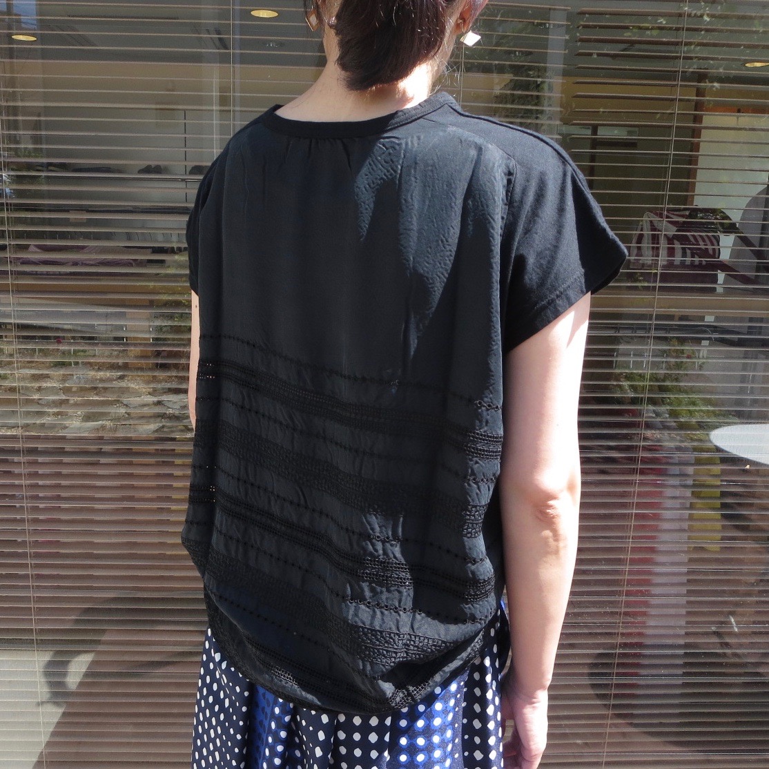 前身頃はカットソー素材、後ろ身頃はキュプラなので落ち感を楽しめます。