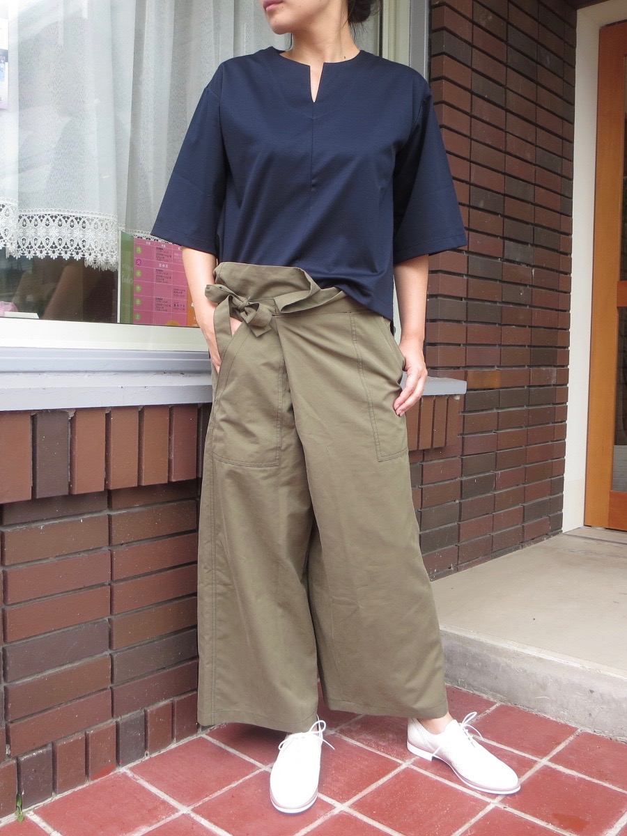スキッパー風の首元は、ほんのり女性らしさを与え、すっきりと見せてくれます。肩が少し落ちたデザインと、ゆったりとした袖回りは、大人のリラックスカジュアルには欠かせません。