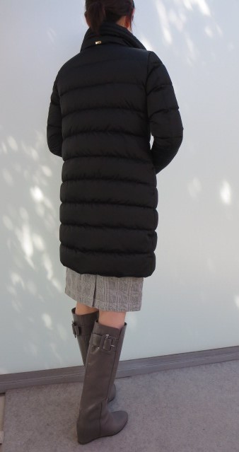 上のダウンコートと同じシリーズのショート丈コートもございます。さっと羽織れてスポーティな中にも、エレガントで上品な雰囲気があります。ちょっとお出かけする時など、重宝しますね!カラーは、ベーシックなキャメルでセレクトしました。後ろ姿もコンパクトで、スッキリ!