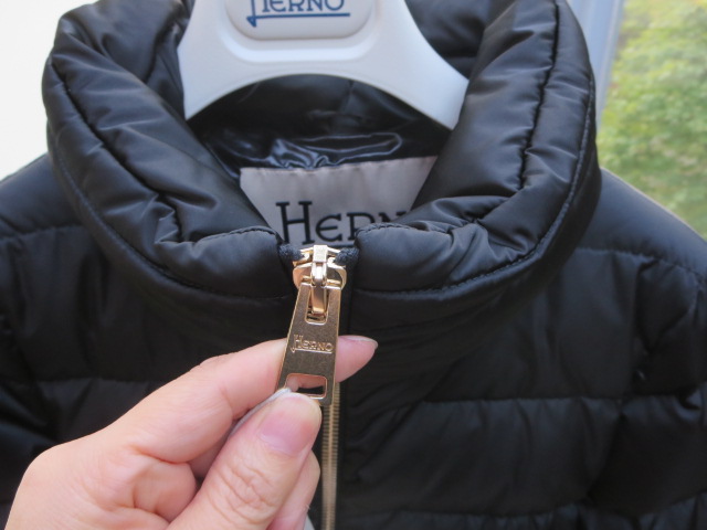 内側には、ファスナー付きのポケットがついています。ボタンにもしっかりと"HERNO"のネームが施されています。