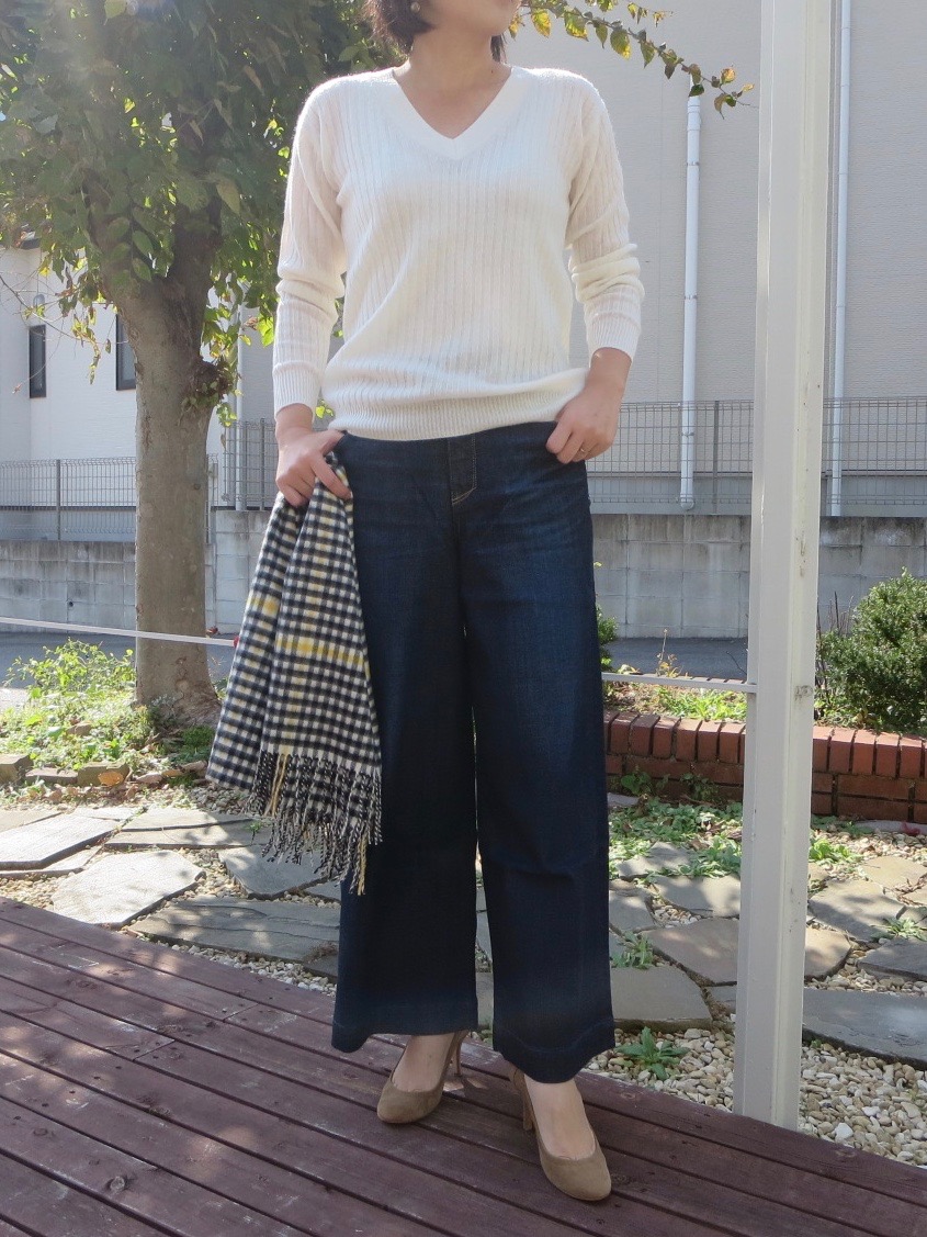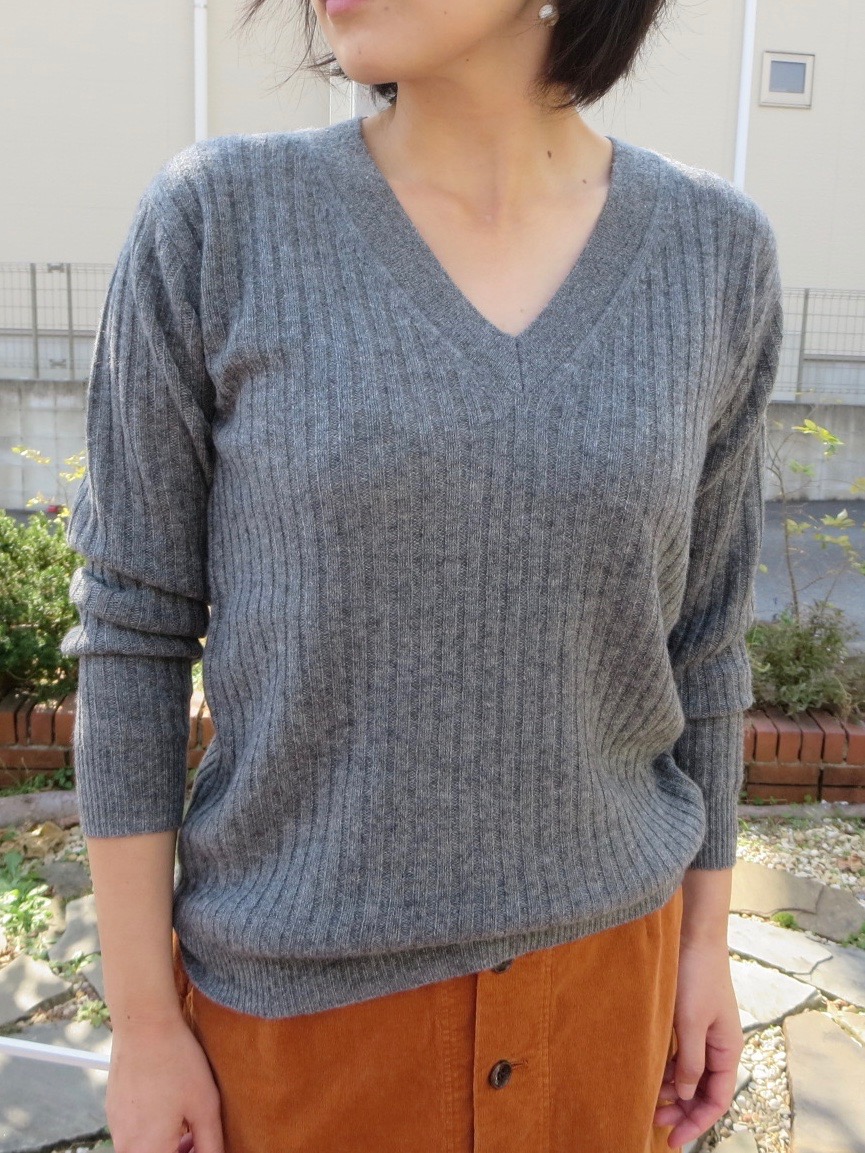 Vネックが女性らしいリブニットは、シンプルながらもそれだけで上品で艶っぽいのは、さすが『YANUK』です。デニムとコーディネートするだけでも格好よく仕上がります。