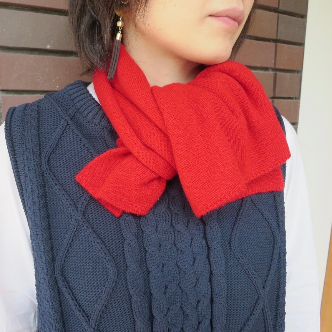 これからの時期には、コートの中にするマフラーとしてもかさばらないので重宝しそうです。