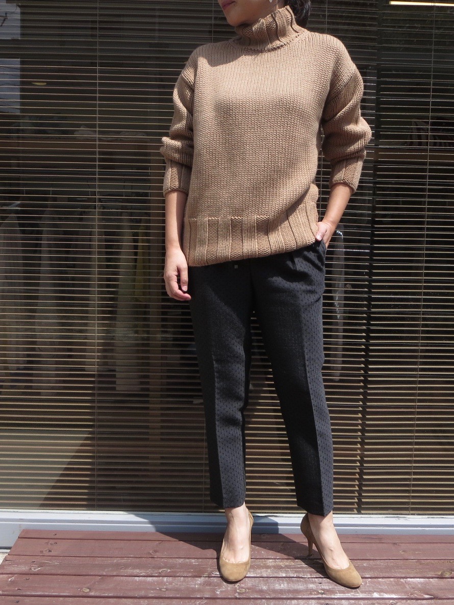 同じくローゲージのニットは、ざっくりとしたサイズ感とトレンドカラーでもあるキャメルで、一気に今年の顔に。