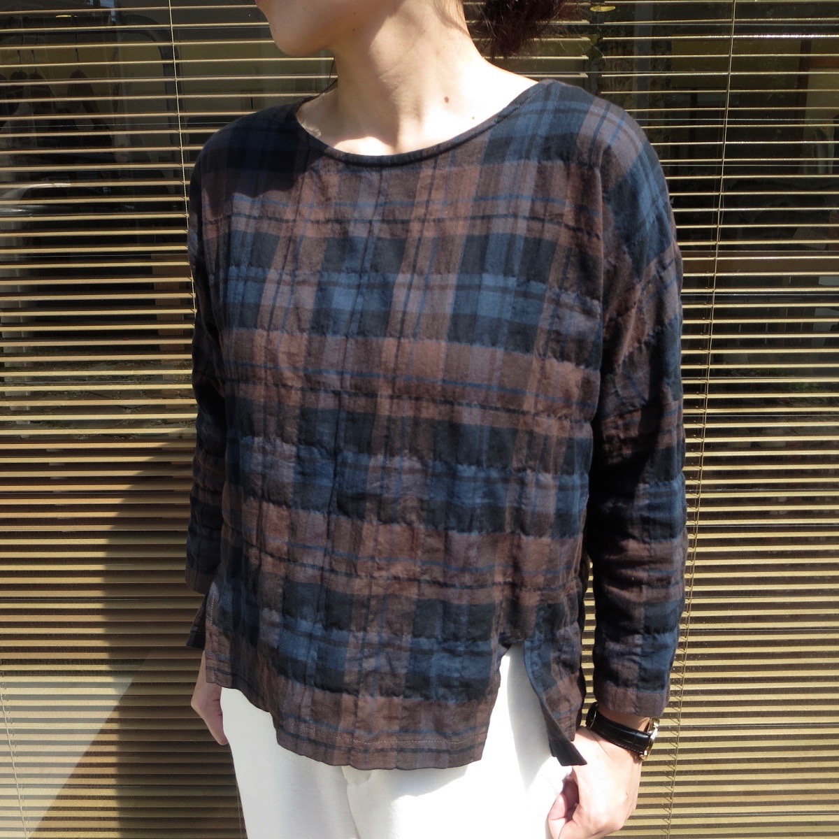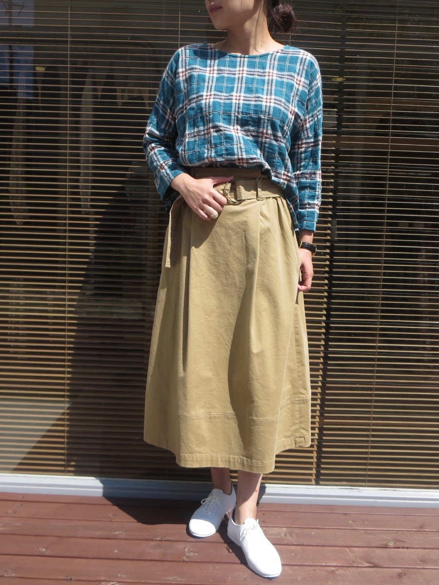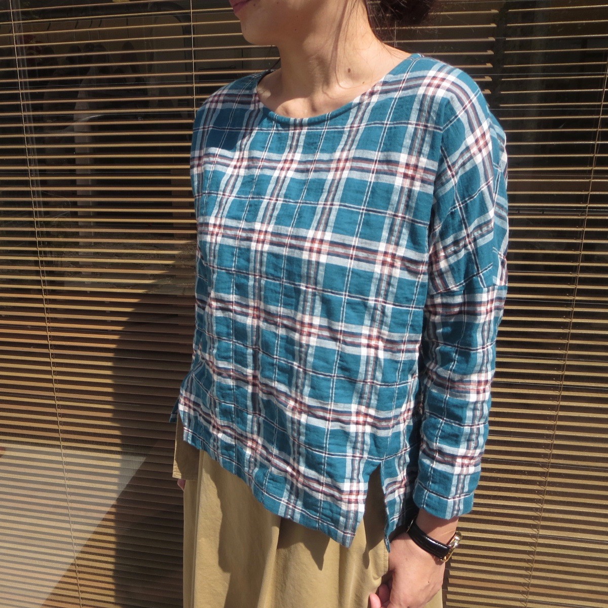 ゆったりとしたプルオーバータイプのブラウスは、さっと着ることができますし、チェック柄がコーディネートの主役になってくれます。