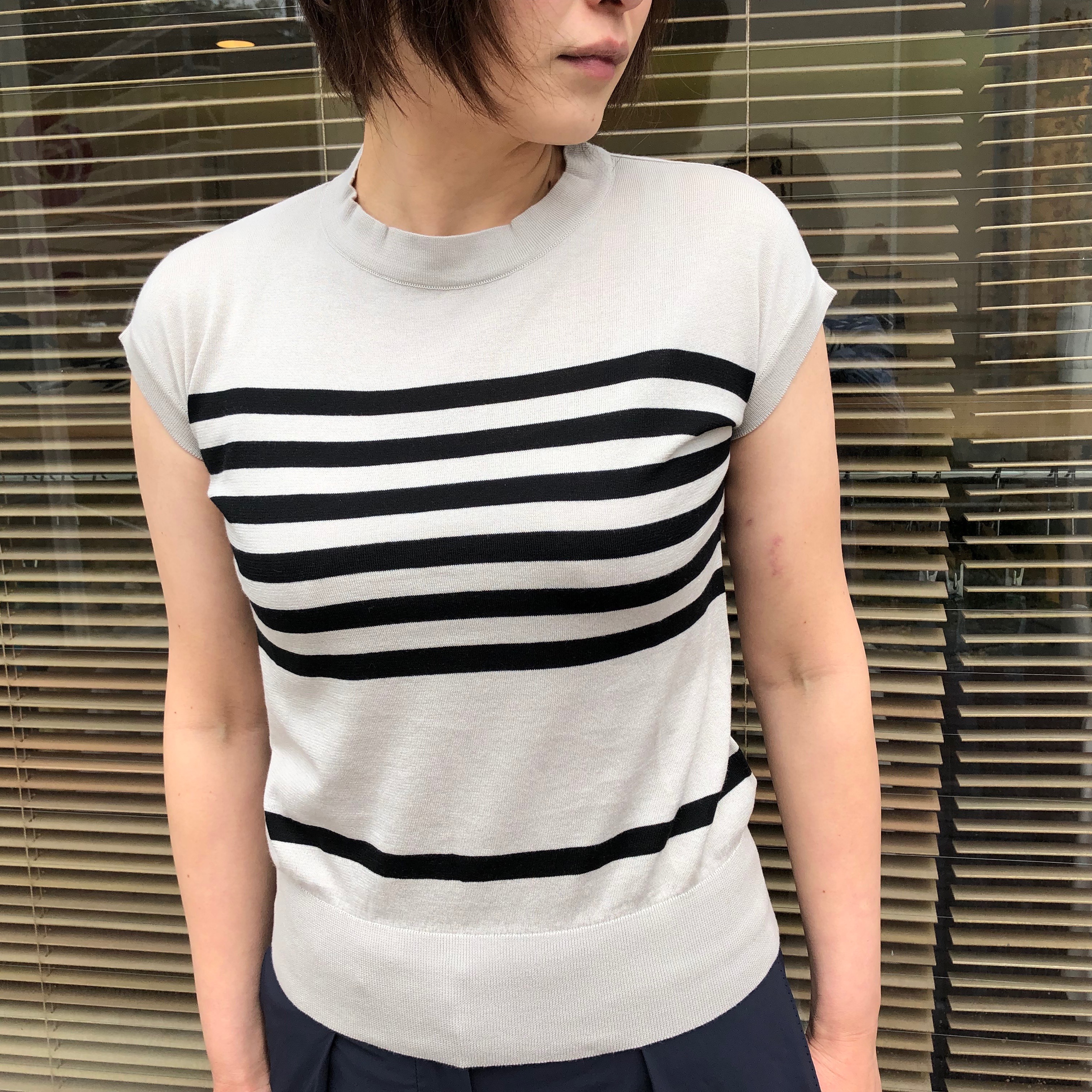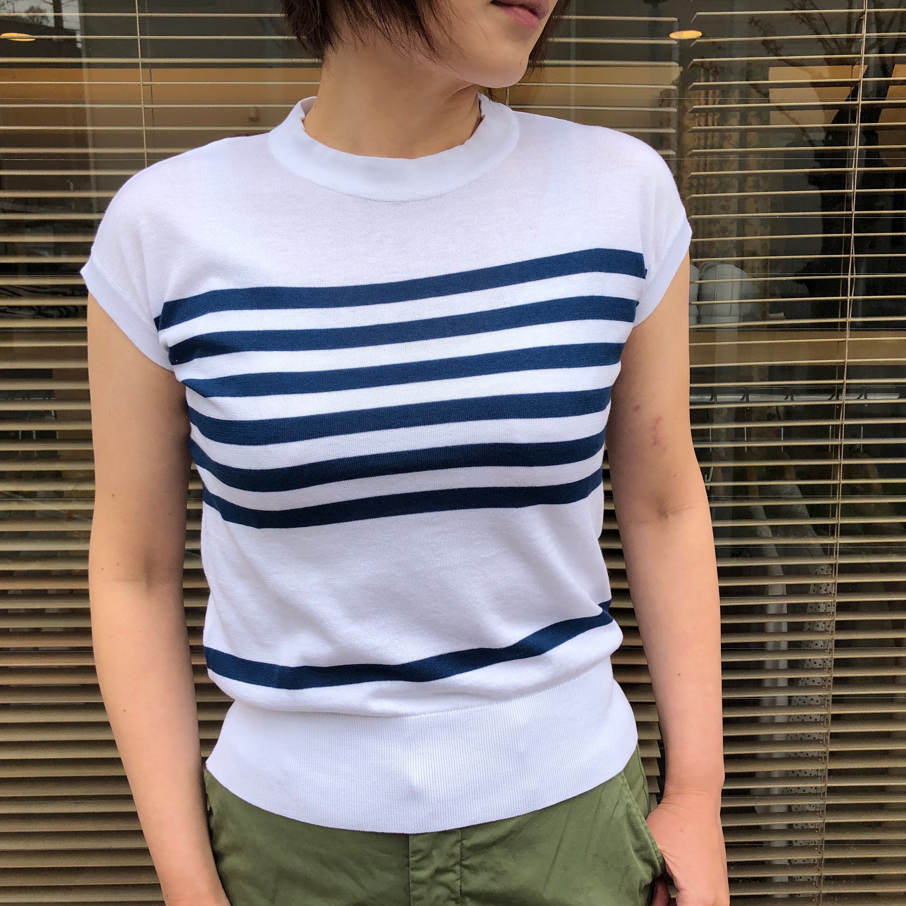 続いてもボーダーですが、より清涼感のあるフレンチスリーブをセレクトしました。