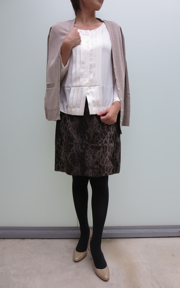 ・ブラウス(heliopole) ¥15750 ・カーディガン(JOHN SMEDLEY) ¥33600 ・パンプス(PELLICO) ¥42000