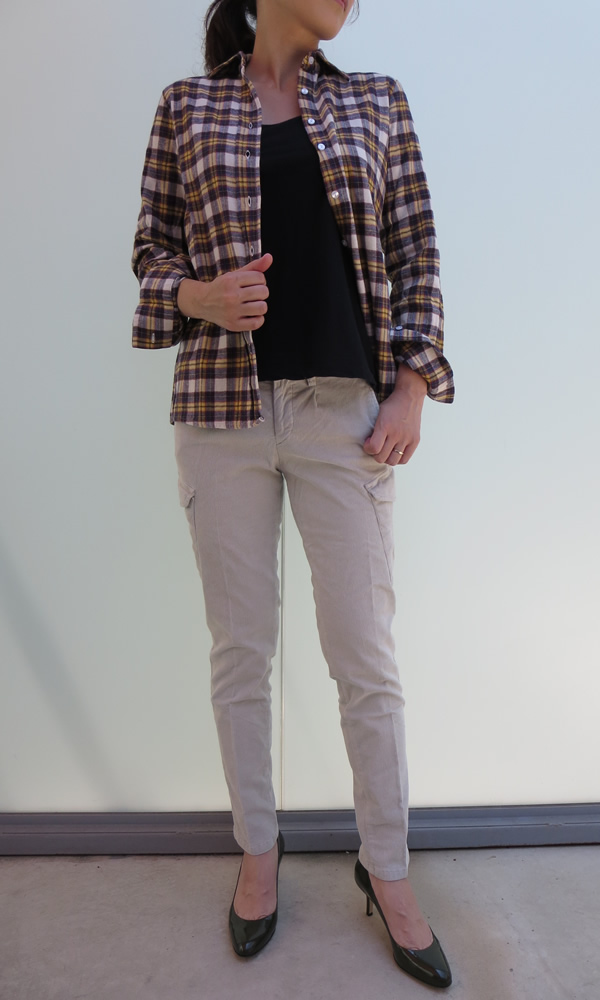 こちら、上のカーゴパンツの同型の生地違い。秋冬らしい薄手のコーデュロイ素材になります。分厚くないので、シルエットにもひびかず、スッキリと履いて頂けます。