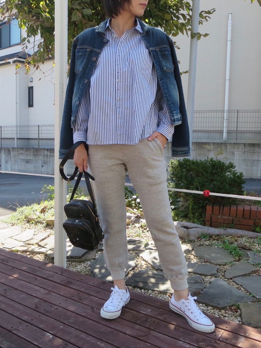 可愛らしい印象のシャツをスポーティなスウェットと合わせれば、アクティブなスタイルも楽しめます。合わせ方によって様々なテイストのコーディネートを楽しめるのもシャツの魅力です。 *写真では分りにくいですが、白と同様、襟と袖口の折り返しはドット柄になっています。
