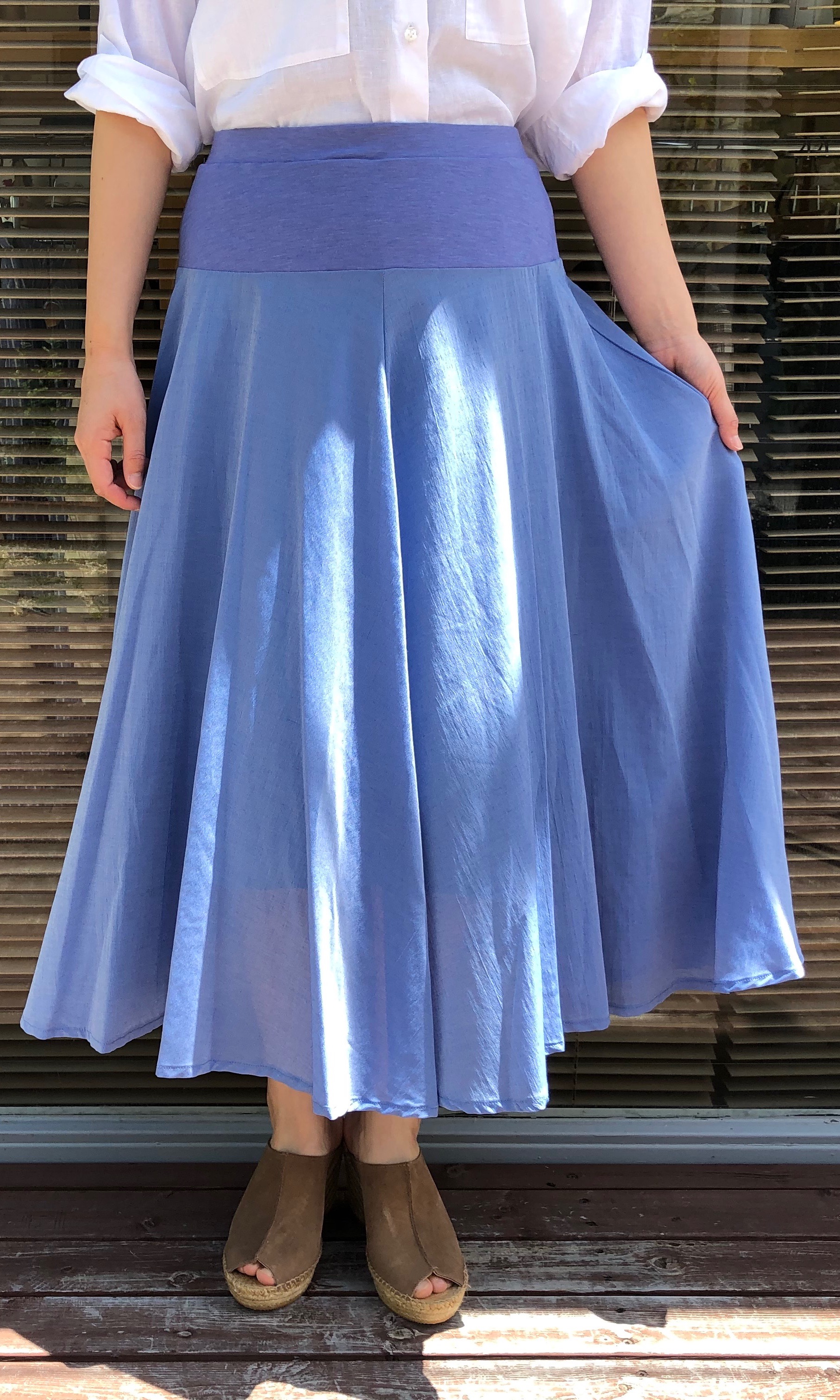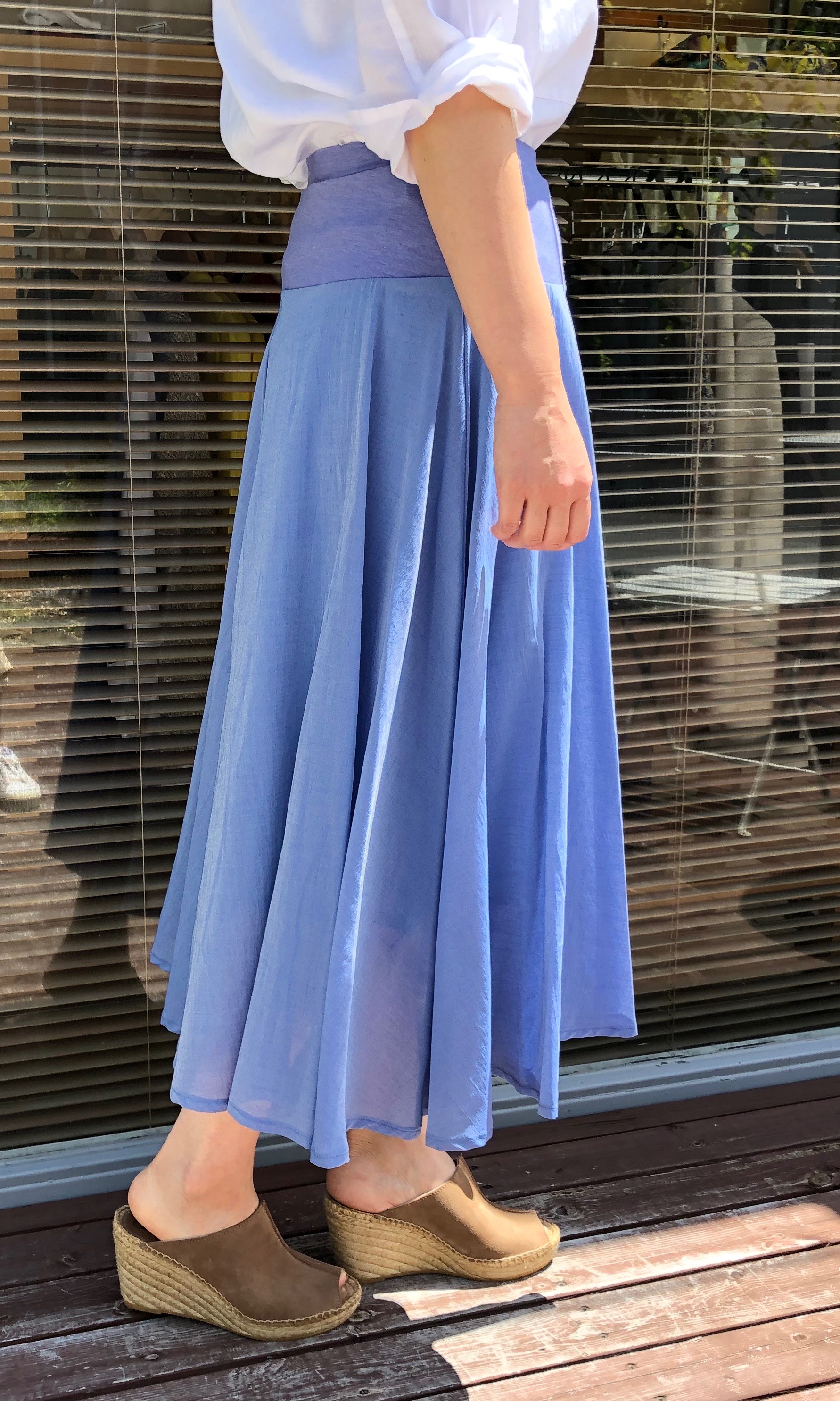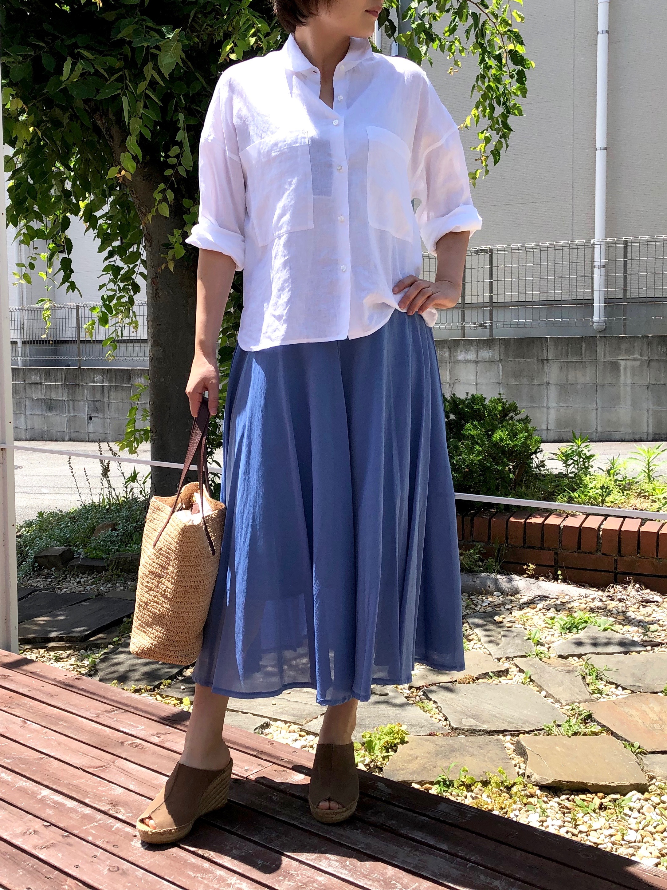 動きに合わせて裾が綺麗に踊るフレアースカートは、大人の上品さを出してくれます。裏地は付いていますが、涼しげな透け感もあり、見た目も穿き心地も軽やかです。
