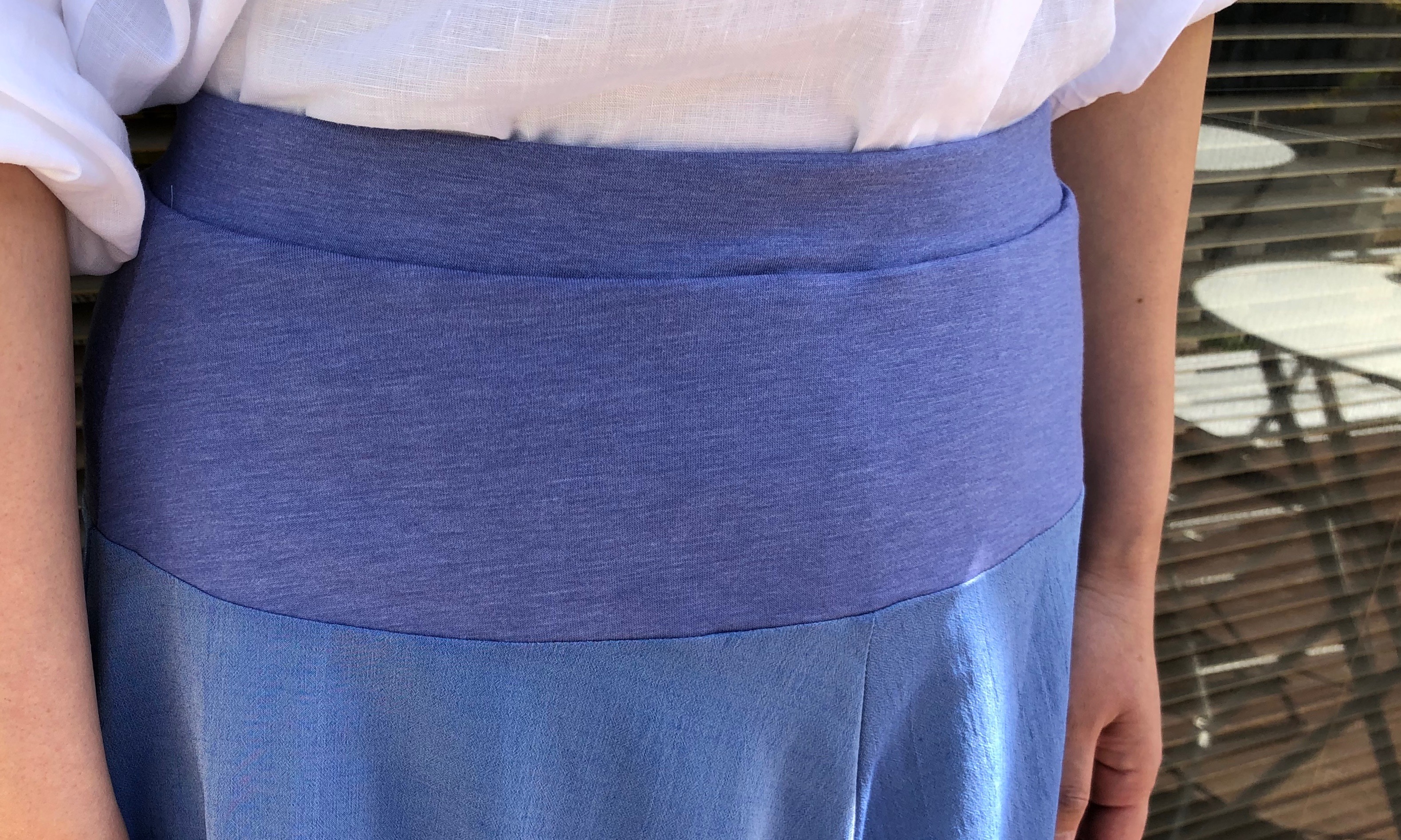 ウエストはゴム仕様で、嫌な締め付け感はゼロです。ウエスト周りは、ベルト幅を広く取っていますが、この部分はカットソー素材で柔らかく、すっきりと見せてくれる効果が期待できます。