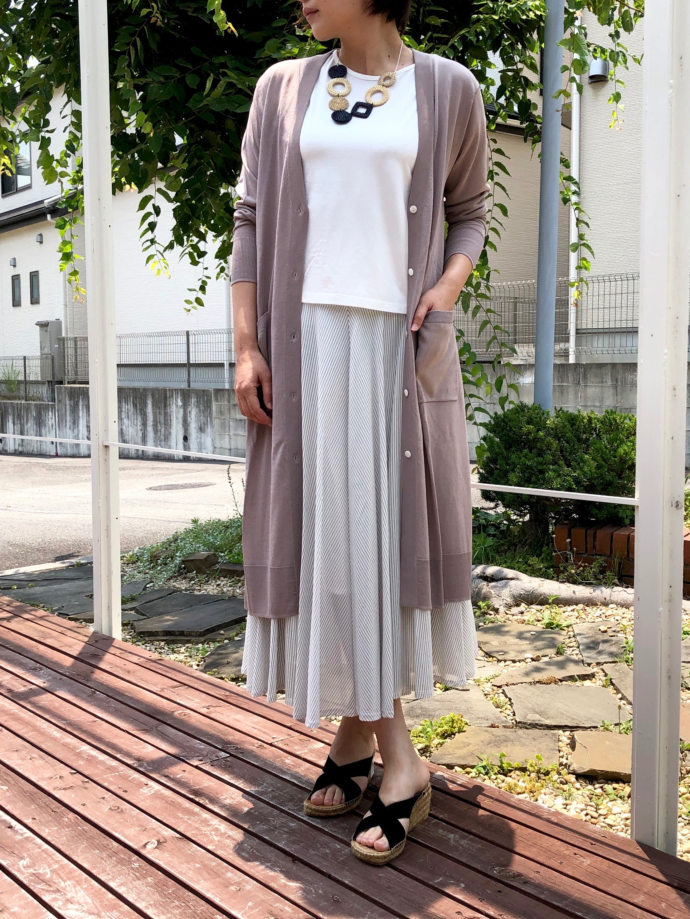 今日も朝から日差しが強く、日焼け防止アイテムが欠かせません。そこでお勧めしたいのが、少し前に入荷した『liriito』のロングカーディガン。密かに気になっていたカーディガン、早速コーディネートでご紹介します。