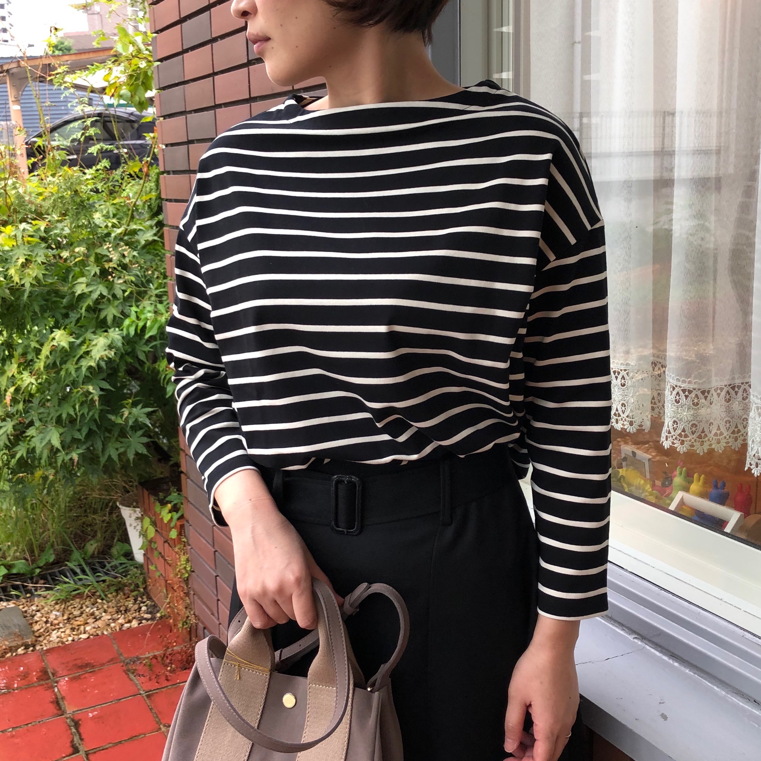 色違いは黒ボーダー。ラインが細いので、カジュアルでありながらも品良く着ていただける黒はオススメです。