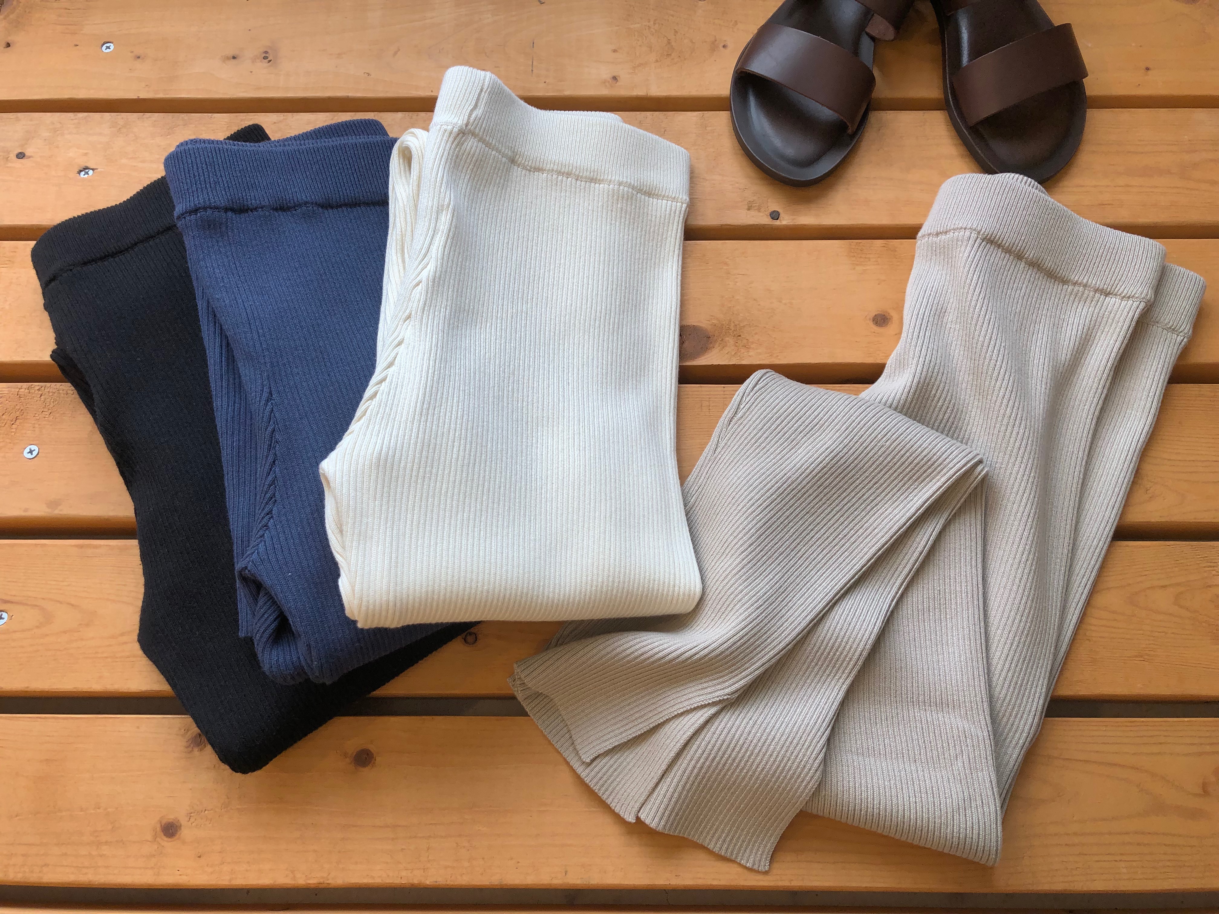 昨冬に好評だった『liriito』のレギンスが、新色を加えてこの春も登場です。スタッフ間でも人気だったレギンスは、トレンド感のある細リブにサイドのスリット、そして何より穿き心地が最高です。お腹周りの嫌な締め付け感がないいので、ストレスフリーで穿いていただけます。