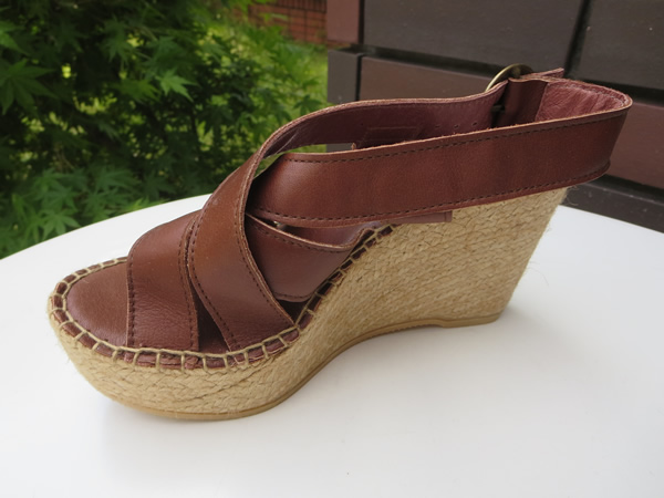 柔らかなカーフレザー使いで、アッパー部分を包み込んでくれるデザインのエスパドリーユ。ヒールは高めですが、とっても安定感があって履きやすい1足となっています。ヒールの高さは、9.5センチ。