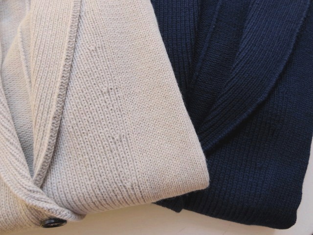 今年は、ダブルボタンでセレクトです!ショールカラーのカーディガンニット。メンズライクなデザインですが、きれいなフィット感が、上品でフェミニンな印象にしてくれます。インナーにシャツやカットソー、タートルなど、色々コーディネイト出来き、とっても重宝しそうですね。色は、グレーとネイビーの2色。