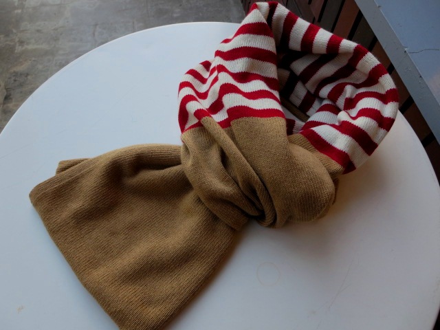 キレイに折りたたんで、袖口に片方を入れ込んで頂くとストールにも変身!ちょっと面白いアイテムですよ。