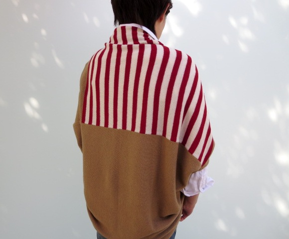 キャメル×レッドの新鮮な雰囲気のボーダーニット。 後ろ身頃は、また違った表情を持っていて、1枚でお洒落な雰囲気に仕上げてくれます!