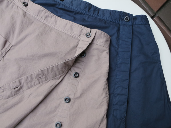 ラップスカートは、履きやすい膝丈で、一年中履いて頂ける優秀な1枚です。前は、釦で留めて頂くスタイルになっています。