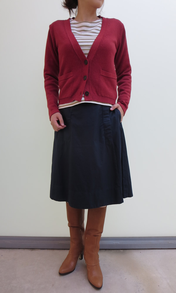 スカートの色違い、ネイビーを履いて新作とコーディネイトしてみました。