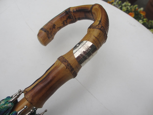 持ち手や芯、石突きは、上品なバンブー(竹)素材。太くしっかりとした質感で高級感のある仕上がりで、ブランドネームが刻まれたプレート付きなど、トラディショナルらしいこだわりが随所に表れています。