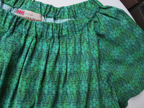 こちらは、2013年SSシーズンの新作のリバティ柄。“Xanthe Sunbeam”。黄金の光を放つ植物をモチーフにしたプリントです。色は、レッド、グリーンの2色展開です。