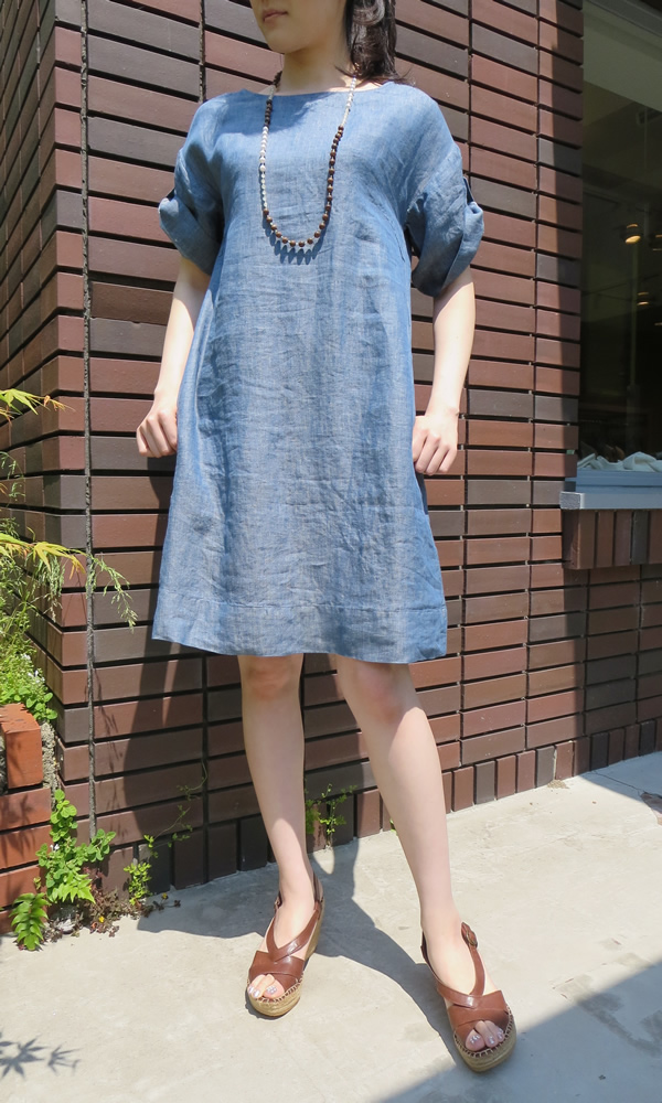 爽やかなリネン100%のボートネックAラインドレス。リネン特有の自然のシワ感を活かした程良く肩の力が抜けた印象に仕上がっています。着丈は、一枚でもチュニックとしても楽しめる丈なので、着こなしの幅が広がりますね!