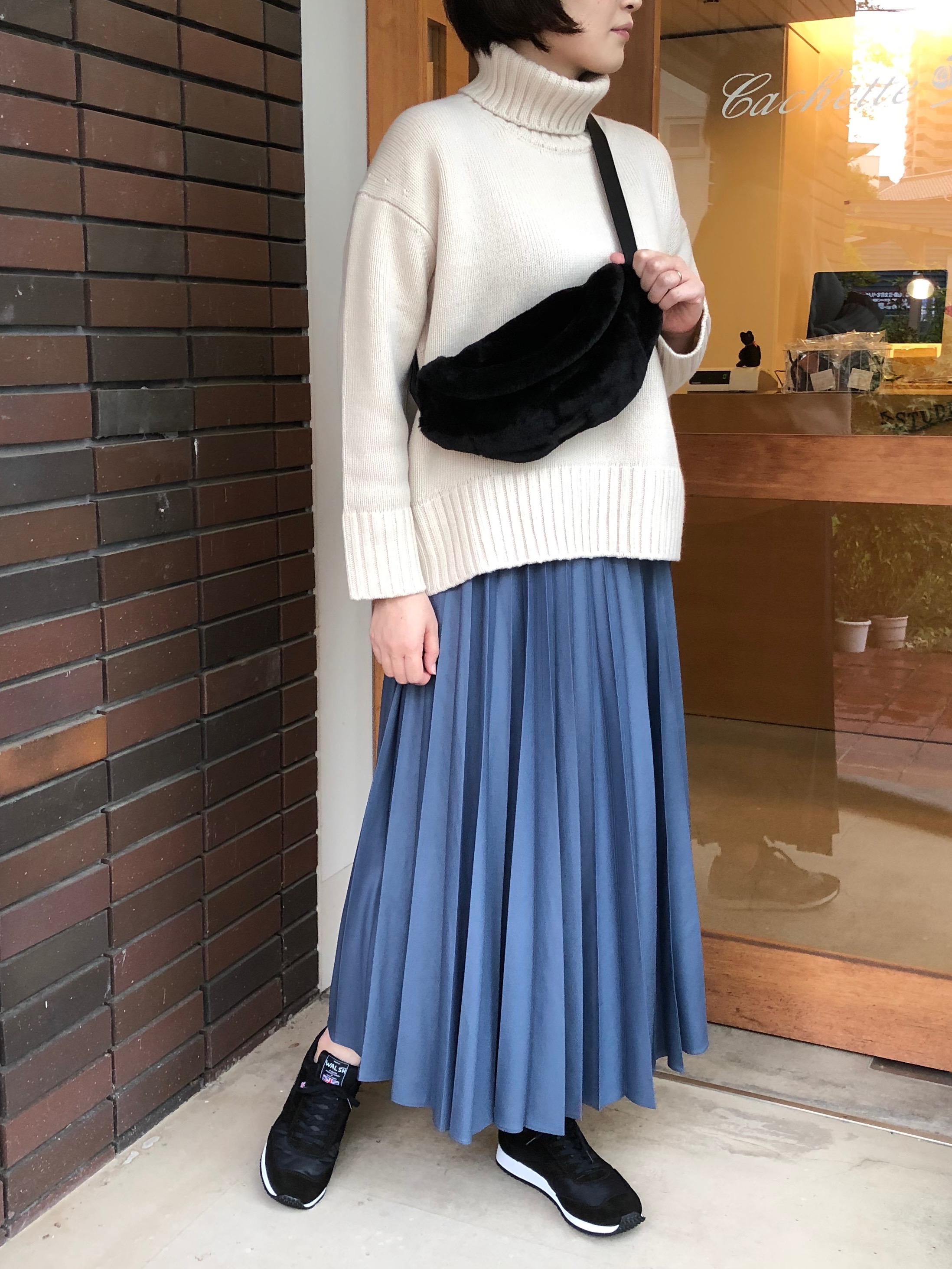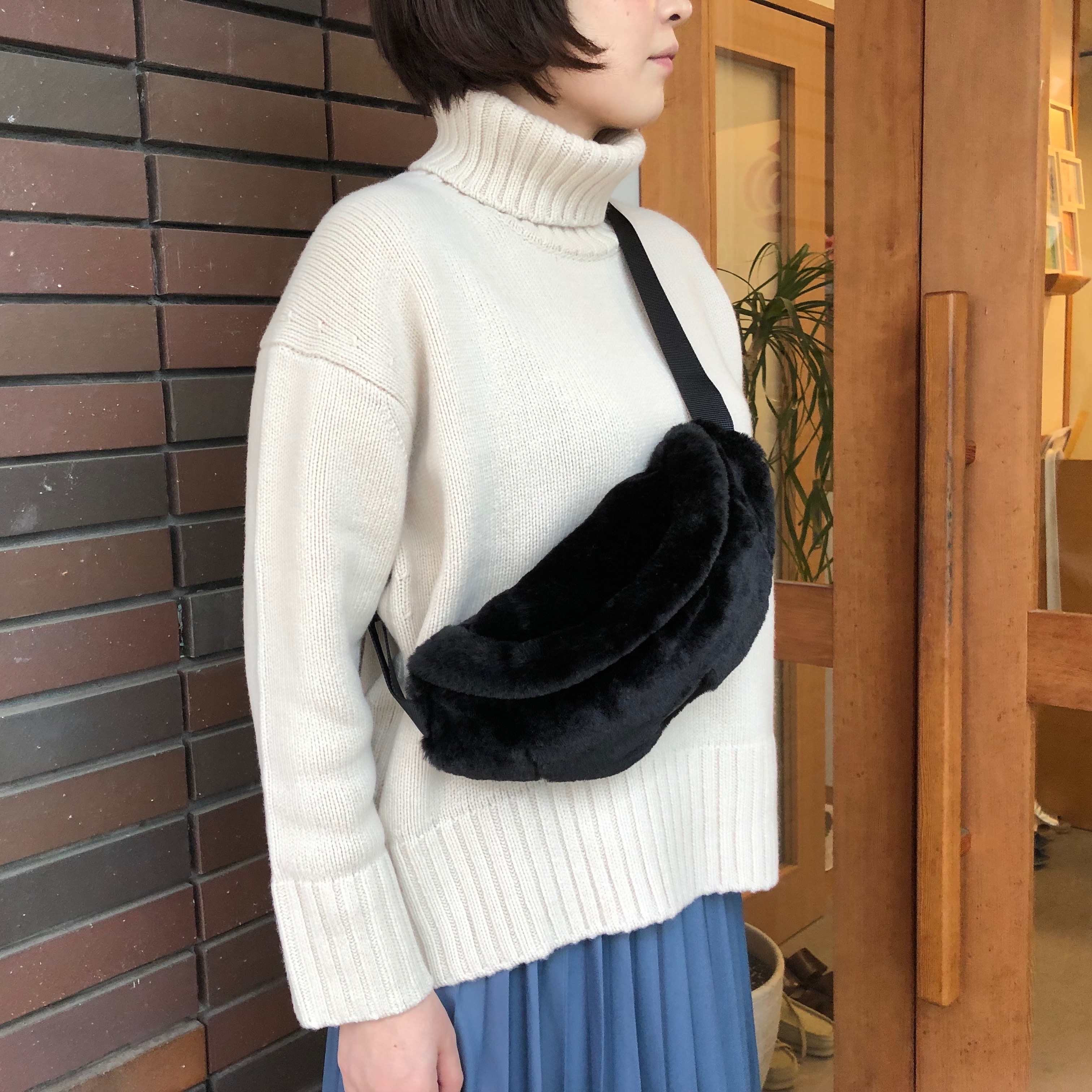 ちょっとしたお出かけにちょうどいいサイズ感で、普段使いに最適です。少し短めに肩にかけるのがお勧め。カジュアルなアイテムですが、ファーのおかげで、ラグジュアリーな雰囲気をプラスしてくれます。