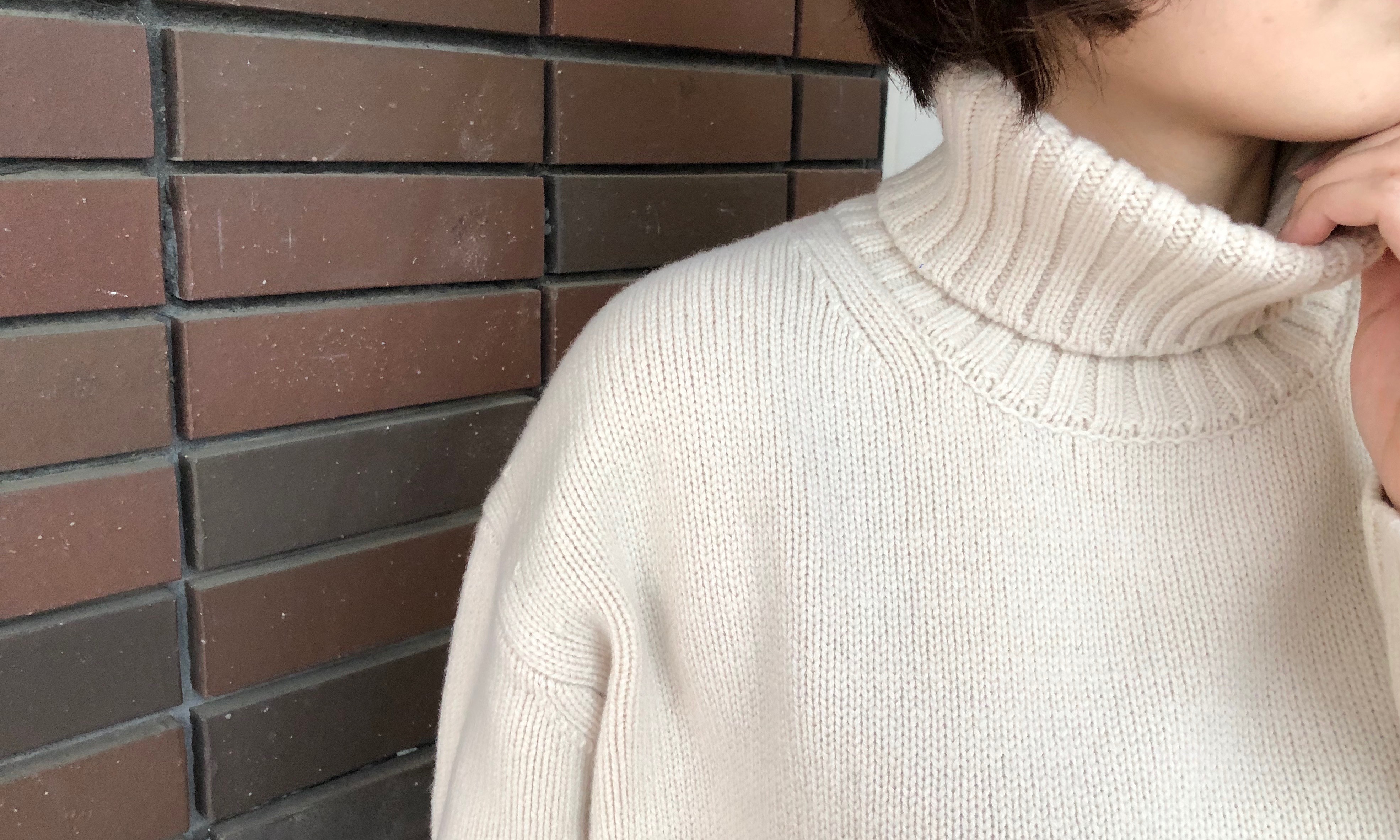 タートルネック部分と袖口、裾はリブ仕様に、シンプルなデザインのアクセントになっています。上質なラムウールを使用しているので、チクチク感が無く、快適な着心地です。
