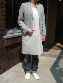 <左> リネンジャケットに、ワンピースやチュニックを合わせれば、かわいらしい大人カジュアルになります。