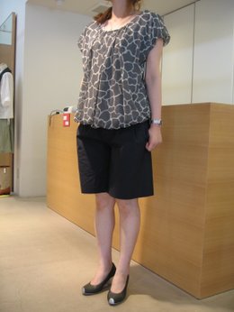 さて今回、大人かわいいアニマル柄のトップスが届きました。Cachetteで、以前からパンツに定評のある、「BLUE DE BRESSE」「aqua fits」のブランドから、新しく「Saint Martique サン マルティーク」というラインが立ち上がり、その新作です。ブランドコンセプトは、~異素材mixをキーワードに、通勤着にも対応できるブラウスブランド~。とても大人っぽいジラフ柄ですが、袖と裾がバルーンになっていて、かわいらしい要素も。今は一枚で、秋になったら羽織りものをプラスすれば、雰囲気はずいぶん変わりますね。アニマル柄を一枚持っていると、明日からの着こなしに大きな差がつくこと、間違いなしです。