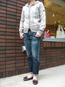 ・シューズ ¥13125 (インポート) ・パーカー ¥30975 (WOOLRICH) ・デニム ¥18900 (HARRISS *Leeコラボデニム)