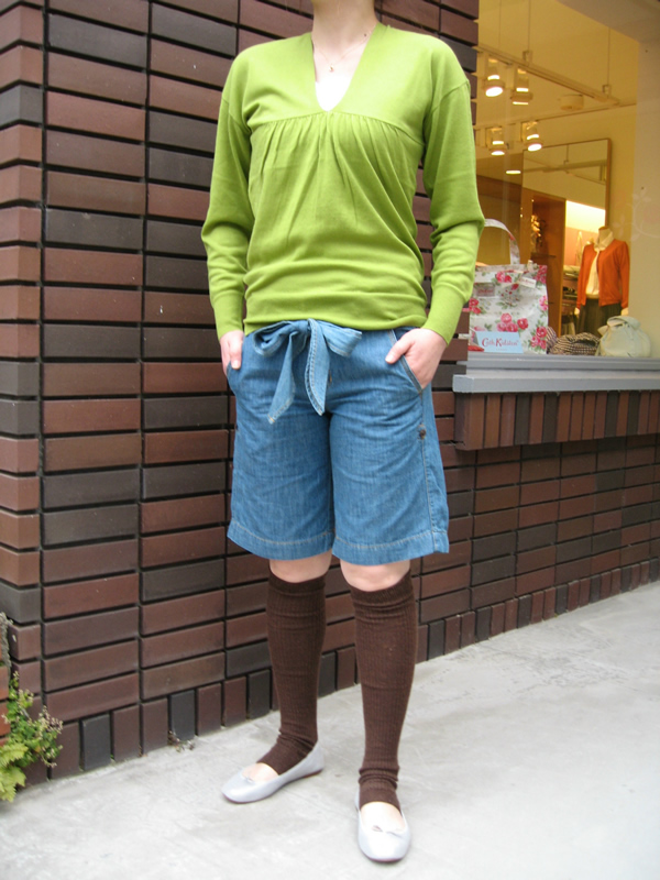今年のおしゃれキーワードのひとつに“デニム”があります。「HARRISS」からは、ハーフパンツとジャケットの提案です。とても柔らかい素材のハーフパンツは、裾をロールアップすることも出来、ショートパンツにもなります。ゆったりめのニットや、ふんわりブラウスとコーディネートするのがおすすめです。ノーカラーのデニムジャケットは、丈が短めなので、スカートやワンピースに合わせると◎。ギンガムチェックのように、柄物とも好相性です。