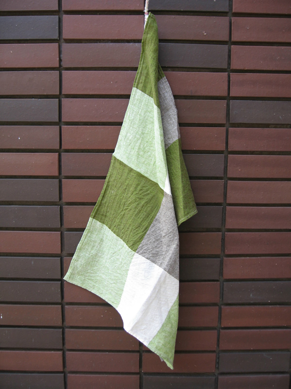 引っ掛けるための、テープが付いていて、Sカンなどに引っ掛けて使うこともできるので、ディッシュクロスとして使ってもいいですよね。吸水性が非常に良く、ハイクオリティーのリネンなので肌にも優しい使い心地。また、打ち込みが甘く、糸と糸の間に隙間が出てくるので、乾きが早く清潔に保つことが出来ます。