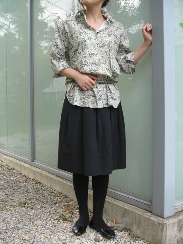 「MARGARET HOWELL」には珍しいリバティプリントを使用したシャツ。ポピーの花をモチーフにしたシックなカラーリングです。オーバーサイズのプルオーバーシャツは、マーガレットハウエルメンズのスタイル。フェミニンなフラワープリントを女性らしいフィットで作ってしまっては、面白味が全くなくなってしまうという考えの元作られたそうです。なんだかハウエルらしいですね。パンツとはもちろん、スカートでブラウジングするのも素敵です。