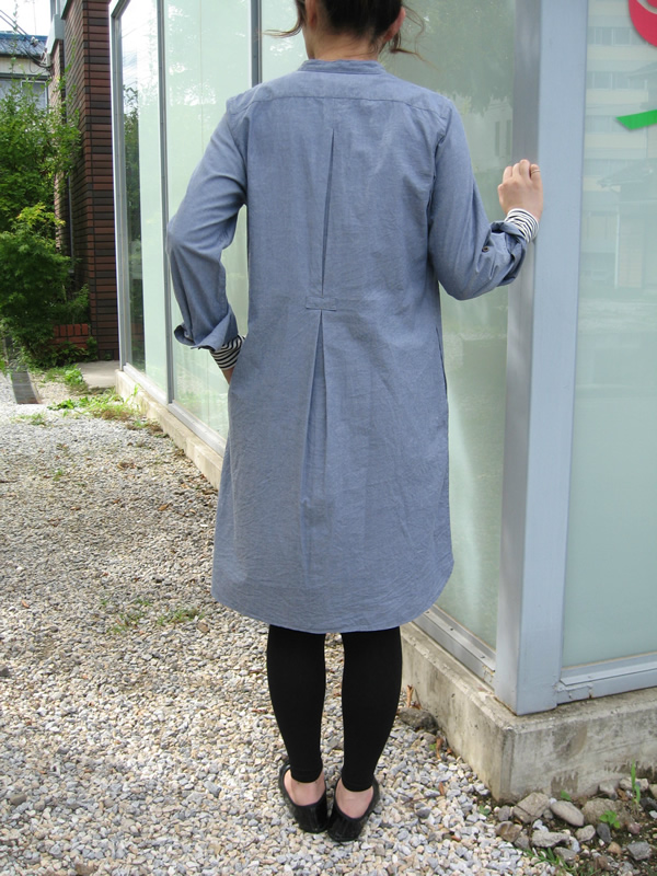 最後はシャツワンピース。ハウエルのワンピースは毎シーズン展開していますが、大人気です。今回は前開きタイプですので、ワンピースとしてはもちろんのこと、間の時期の軽いコート感覚で羽織ることもできます。オックス調のシャンブレーで、ドライな風合いの中にも独特なふくらみ感を持ったワンピースです。
