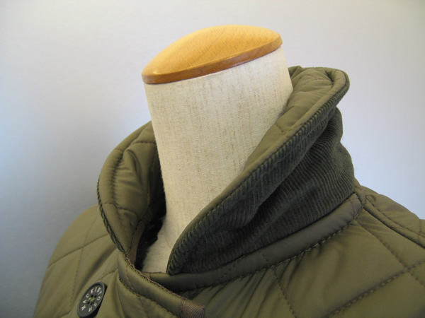 ダブル仕様で、小さなショールカラーの裏部分はコーデュロイになっています。バックはフラップのようになっており、動作に合わせてスナップ釦を外して着用してもいいですね。