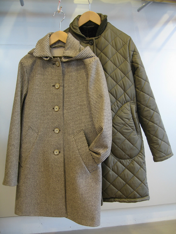 ・千鳥柄コート ¥82950 ・ボアキルトコート ¥69300 共に「MACKINTOSH」