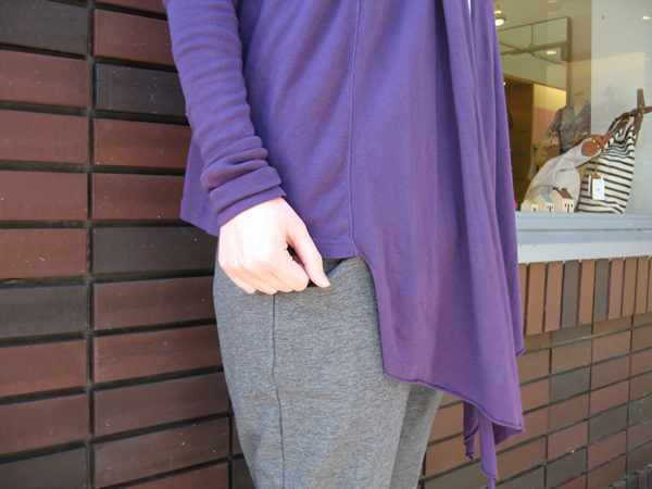 続いて、ショール風のカーディガン。こういう落ち感のきれいなシルエットを見ると、さすが「three dots」と感じます。