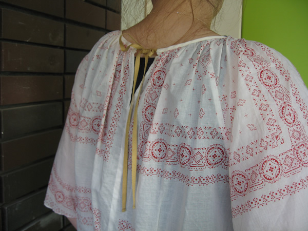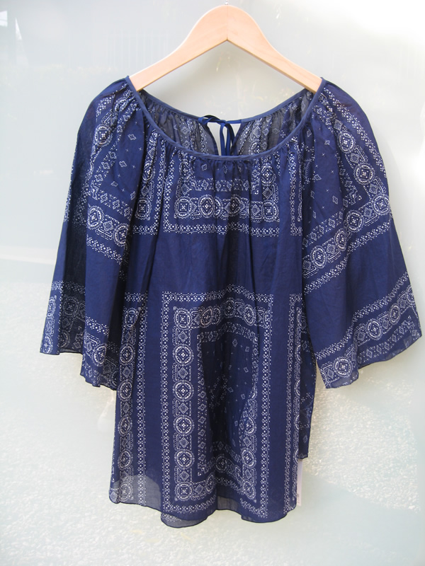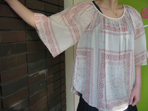 バンダナをイメージさせるようなふんわりとしたスモックブラウスです。見た目も涼しげでこれkらの季節にぴったり。