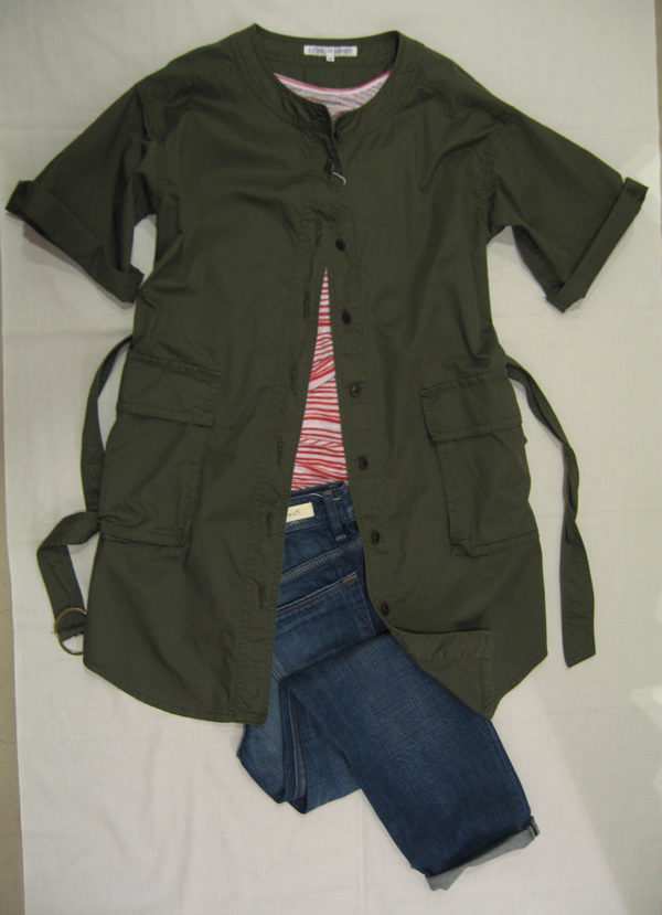 「HARRISS」から届いた新作は、シャツワンピース。そのままワンピースで着るのは、もちろん素敵ですが、前開きなので、重ね着をいろいろ楽しみたい一枚です。半袖なので、今すぐ取り入れることもできますし、涼しくなったら長袖と重ねることもできます。