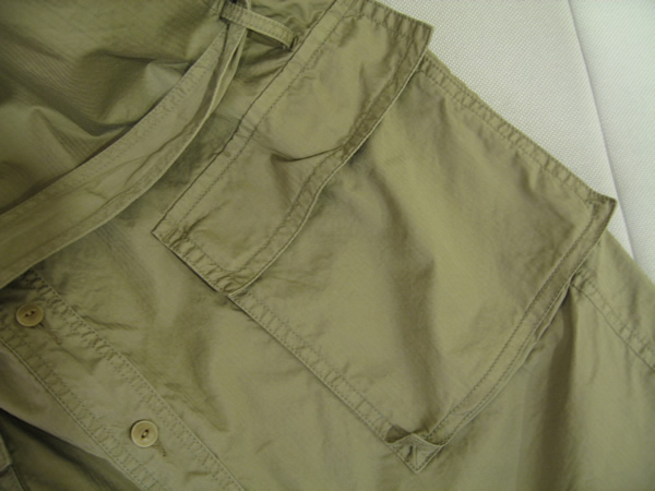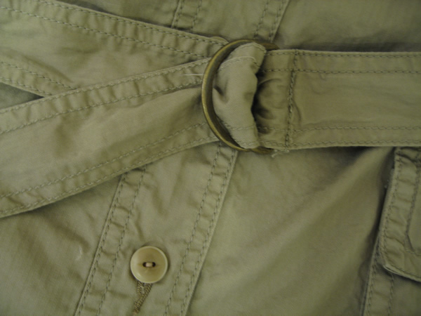 サイドには、マチのある大きなポケットが付いていますが、それ程ボリューム感もなく、逆に全体のアクセントになっています。また、コートに付いているようなベルトは、ラフに縛ったり、後ろで結んでおいたりとアレンジが様々です。ヘリンボーンの生地は、ハリ感もありながら柔らかな着心地です。