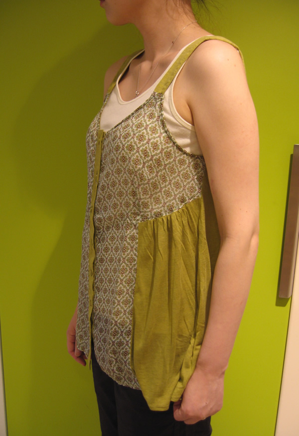 上と同シリーズのキャミタイプです。切り替えの仕方が凝っていて、背部分は無地になります。