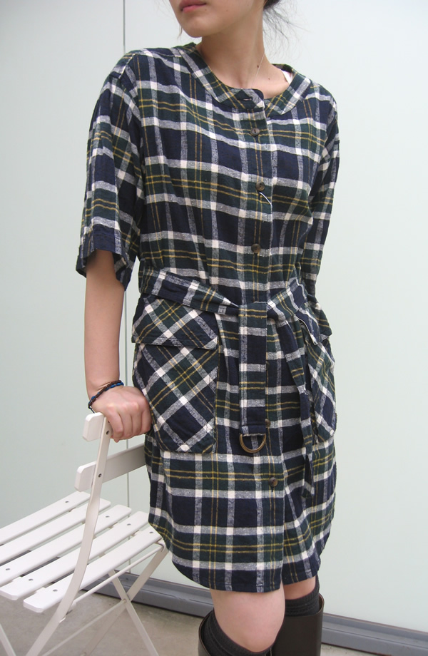 「昔こんなの着てたぁ」という声が聞こえてきそうなチェック柄を使ったワンピース。前開きなので、羽織る感じで着られて着こなしの幅が広がりそうです。コットンに洗いをかけ、ヴィンテージ感のある風合いに仕上がっています。