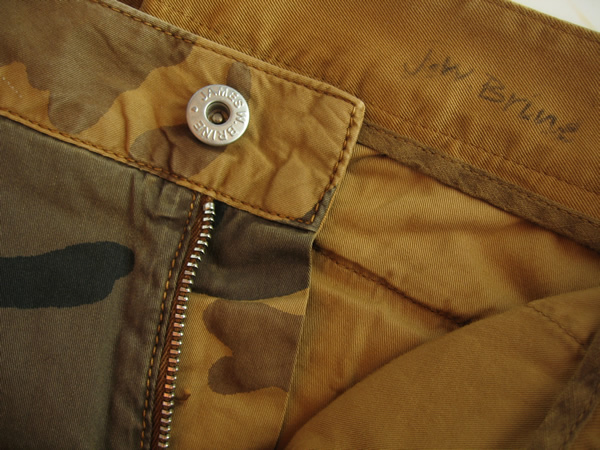 まずは、「J.W.BRINE」の迷彩柄カーゴパンツから。8月13日のブログで「J.W.BRINE」のカーゴパンツをご紹介したのですが、その直後から反響があり、今では、サイズやカラーが欠けている状態です…。そのカーゴパンツの同モデルに、迷彩柄をのせた新作が、満を持しての登場です。