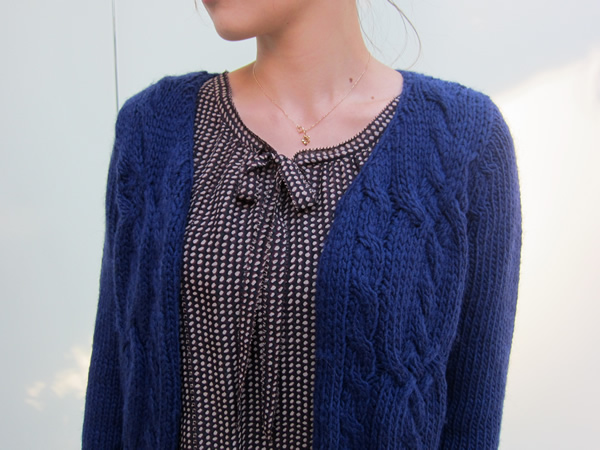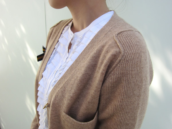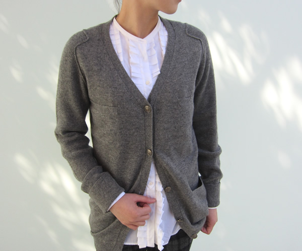スクールガールを思わせるような、ニットカーディガンは、少し丈が長めなマニッシュな雰囲気で、ウォーム感たっぷりです。