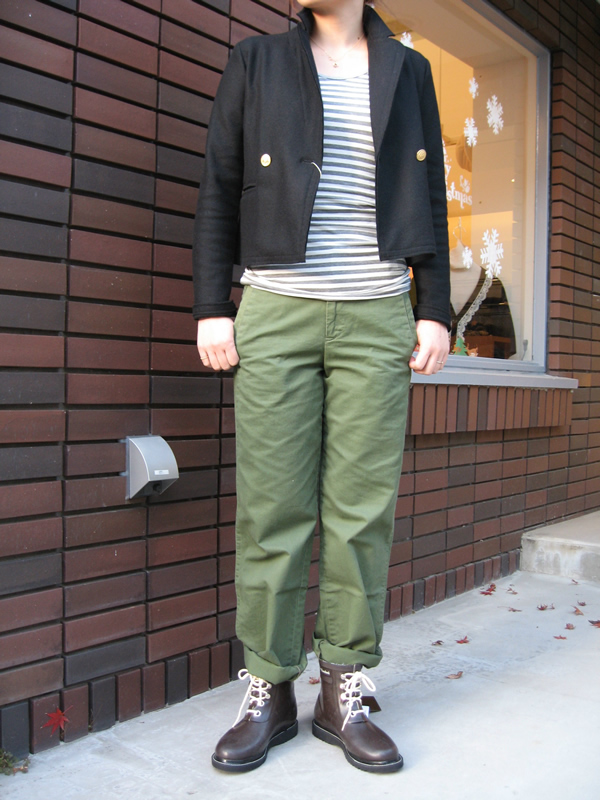 *ゆったりとしたパンツをロールアップしてメンズライクな着こなしをしたり、スカートに合わせて外しアイテムとして使うのがおすすめのコーディネートです。