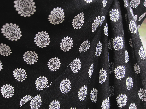 南仏プロヴァンス地方の“Mistral(ミストラル)社”というメーカーのプリント地を使用しています。シックな黒ベースに小紋柄をのせたクラシカルな雰囲気が、大人の雰囲気を演出してくれます。
