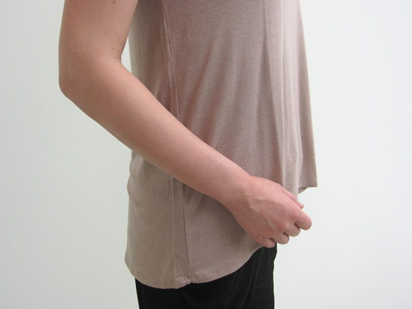 袖のリブがあることで、普通のカットソーとはまた一味違った雰囲気に。薄い素材ですが、インナーによっては、生地のメランジ感が際立つので、色に深みが出ます。