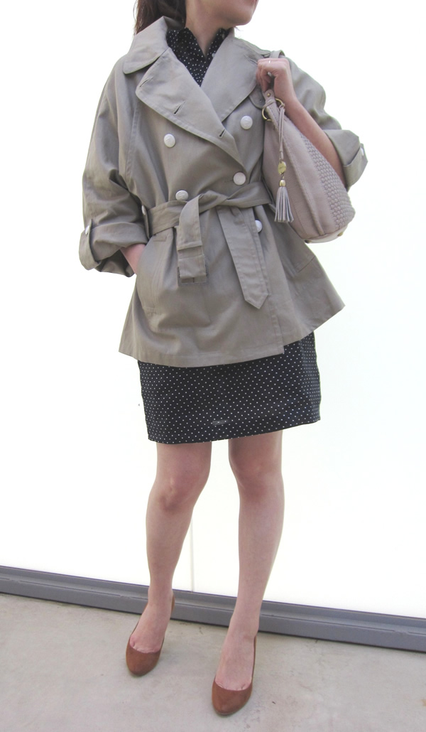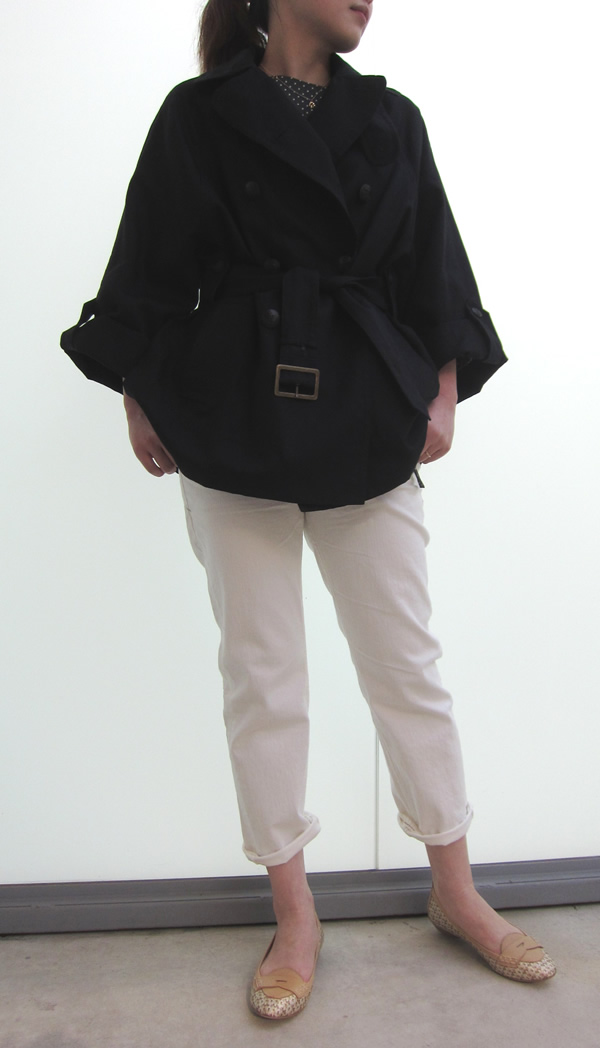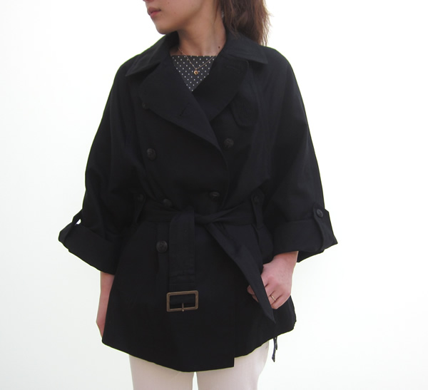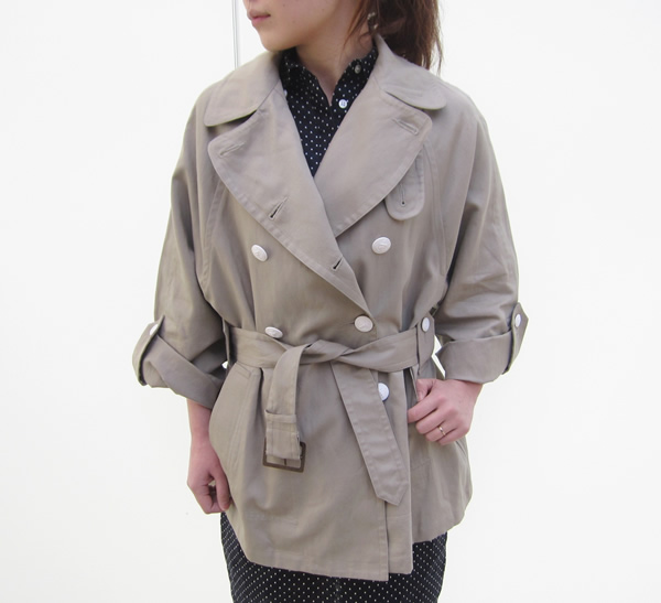 展示会で羽織って、「欲しい!」と思わずオーダーしてしまったショートトレンチコートです。