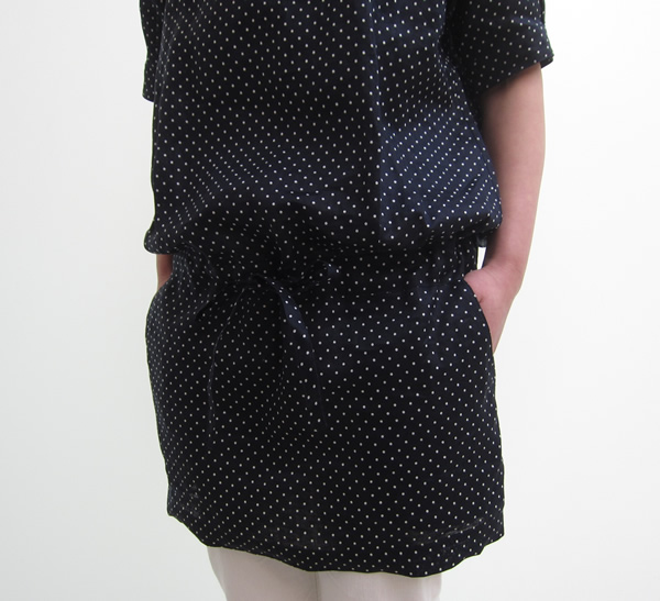 ウエストのドローストリングで丈を調節することが可能ですので、上半身に少し膨らみを持たせて着るのが雰囲気があって◎。ぐっと絞って、丈を短くしてパンツと合わせるのも素敵です。